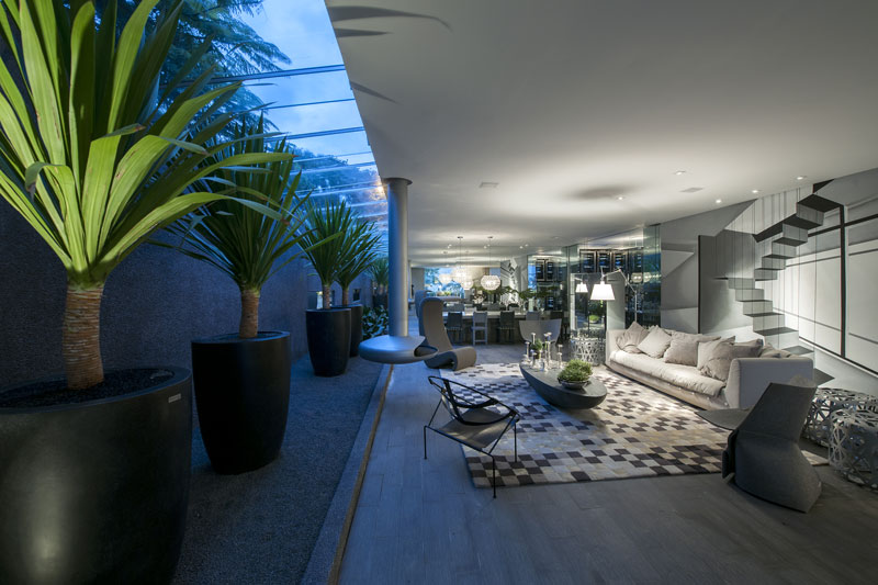 Os ambientes, totalmente integrados, trazem móveis da Artefacto, Artefacto B&C, Beneditx, Conceito Firmacasa, Futon Company, Érea, Micasa, Olho | Interni, Ovo, Tora Brasil e Tok&Stok.