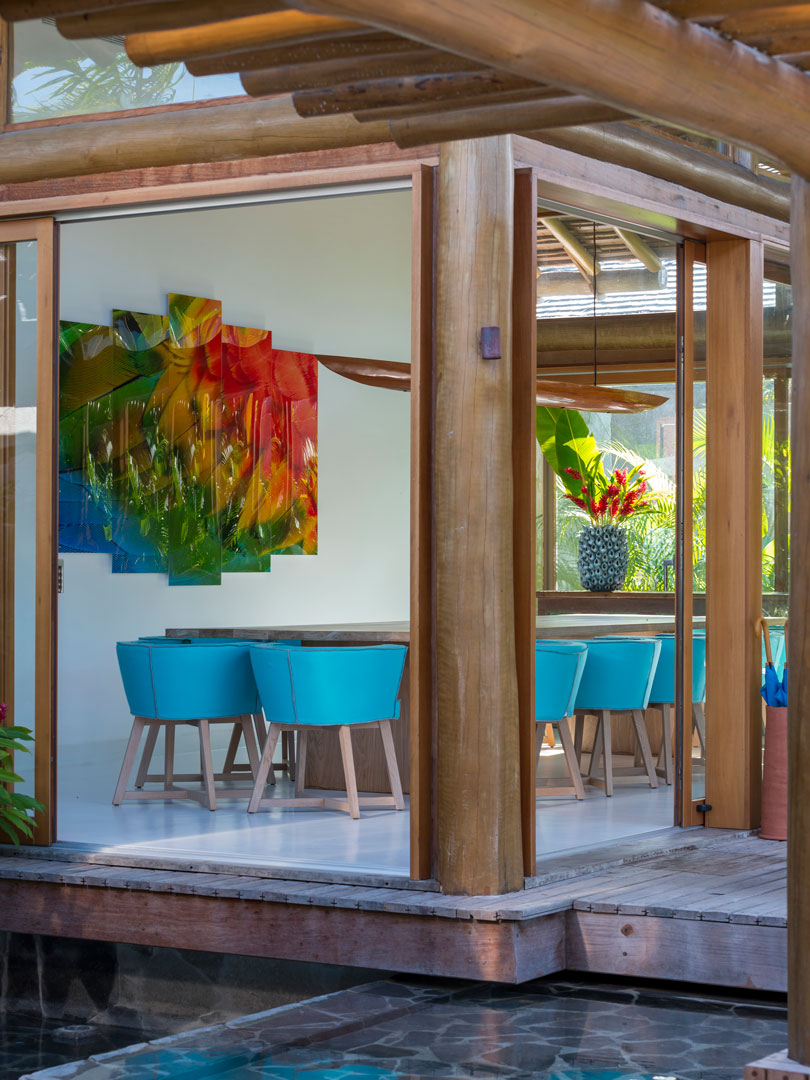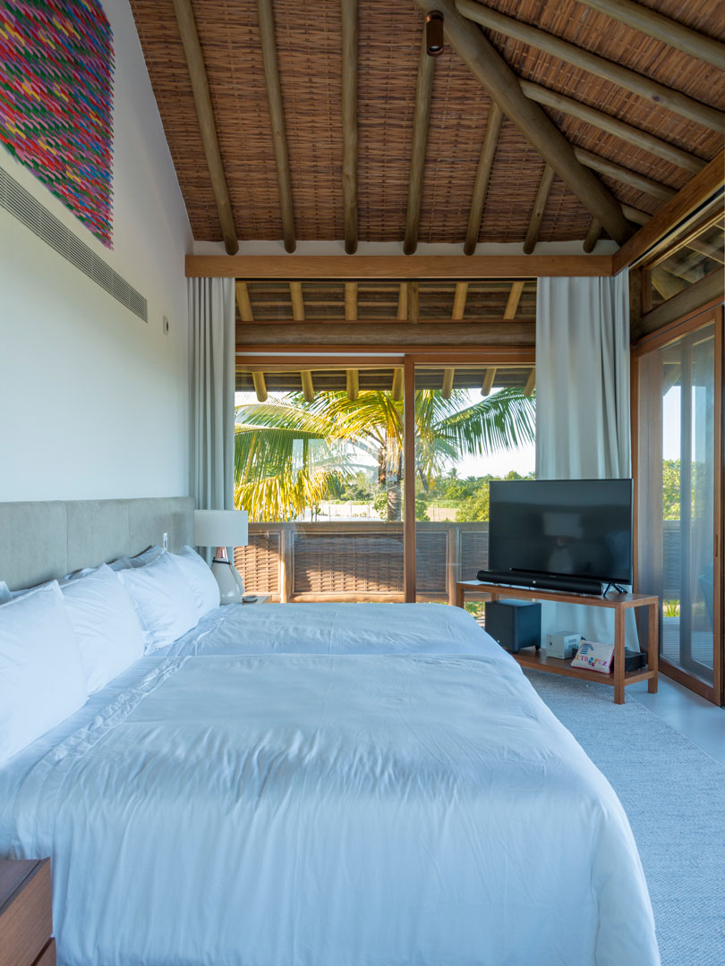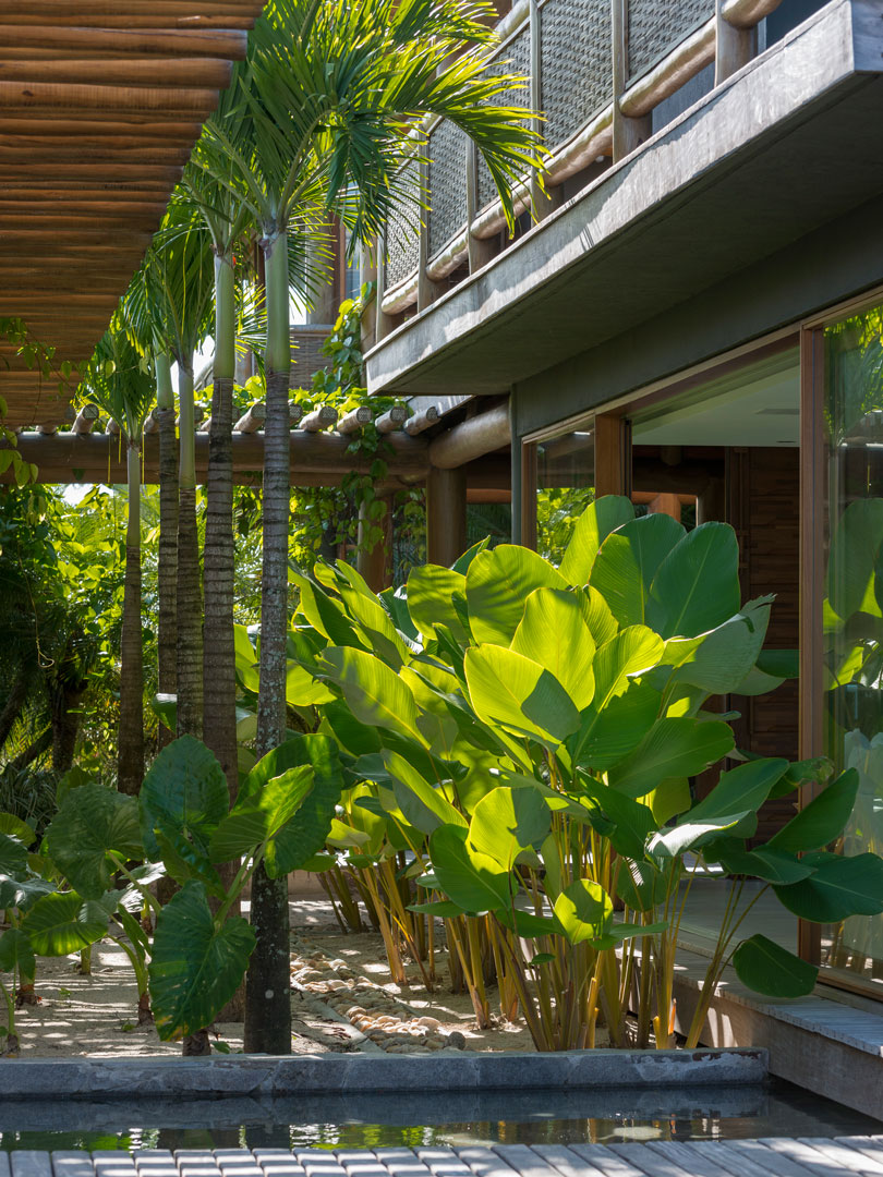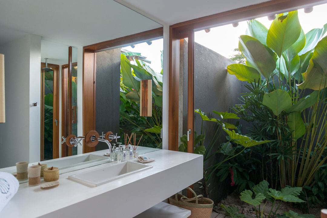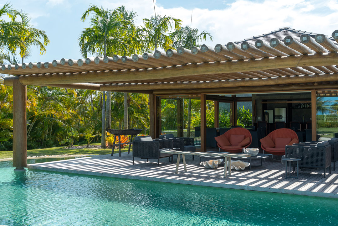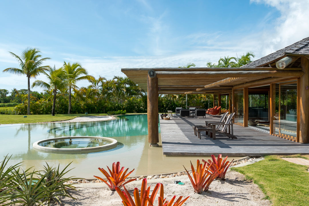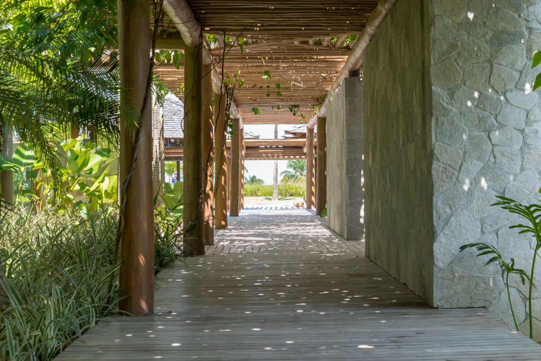 Combinando elementos rústicos, vista exuberante, móveis contemporâneos, paisagismo tropical e ambientes integrados, esta casa em Trancoso, na Bahia, possui 831,22 m² de área construída em um terreno de 3.288 m².