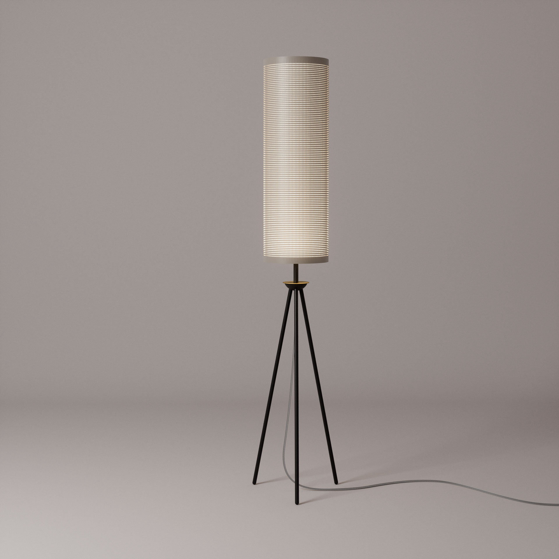 Para Felipe Hess, a iluminação é tão importante quanto qualquer outro elemento do design, pois é ela que tem o poder de realçar ou apagar os espaços. Apaixonado pelo assunto – e um consumidor voraz de tudo de bom que foi criado nos anos 1950 –, Felipe sentia falta de um desenho mais industrializado. Para criar sua linha Aurora, ele idealizou uma chapa perfurada, “como um filtro que oferece uma luz difusa, interessante, e um tripé com uma cruzeta muito simples e de formato piramidal”.
