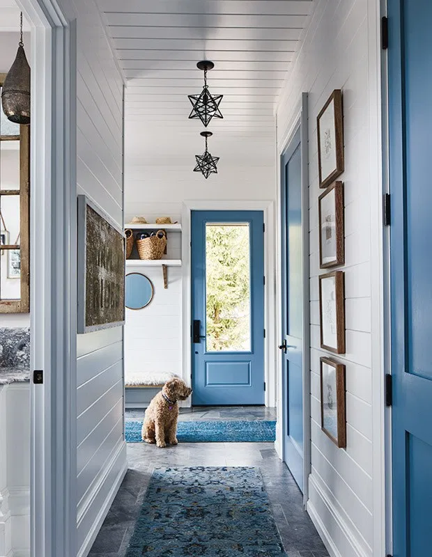 - Contraste: se você deseja criar um ponto focal no espaço, opte por uma cor vibrante e contrastante em relação à parede. Por exemplo, uma porta verde contra uma parede branca cria um ponto focal impactante.